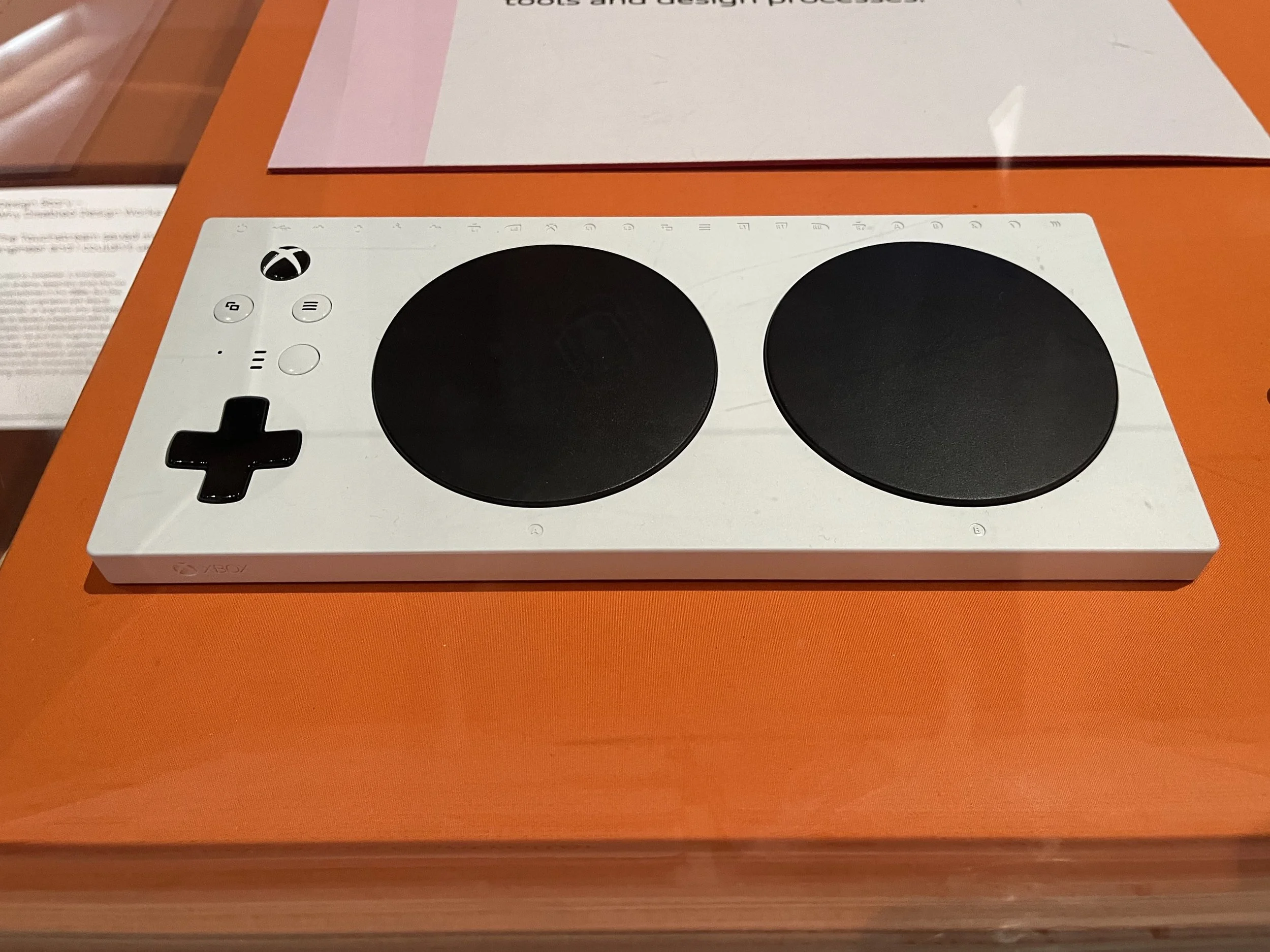 Another item that I found fascinating was the adaption of an Xbox controller, made by Microsoft in collaboration with disabled gaming communities. Gaming is an activity that people without disabilities may never face any difficulty participating in - as a hobby associated with leisure and relaxation it should be as easy as possible. However for many people with disabilities. this is not the case. Holding a strong grip on a controller can cause pain, as well as having to simultaneously hold a controller, move the joystick and press buttons.